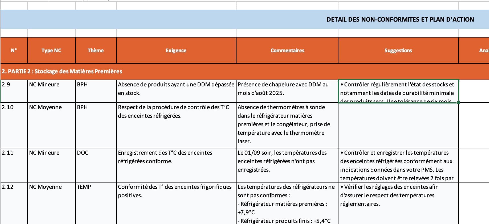 Generez un plan d'action en fonction des non-conformites.